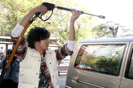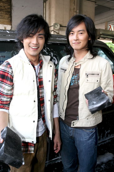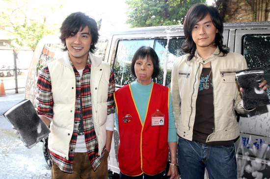 替许玮伦行善 贺军翔、郑元畅挽袖洗车[组图]
