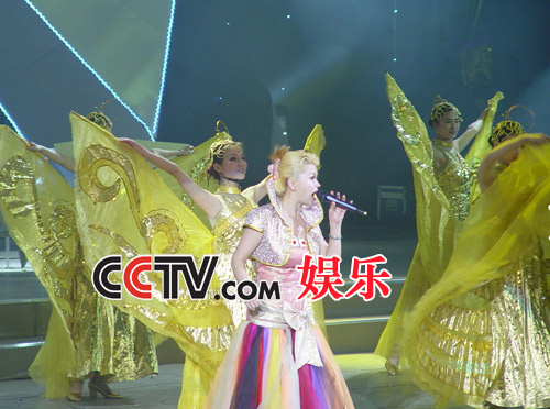 | 她唱起《爱我中华》来,还真是颇有宋祖英腕儿 |