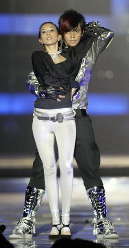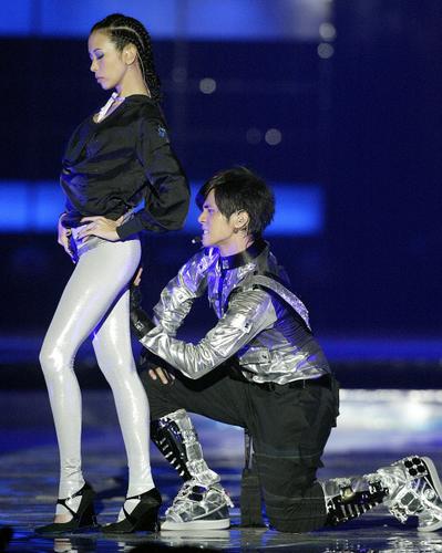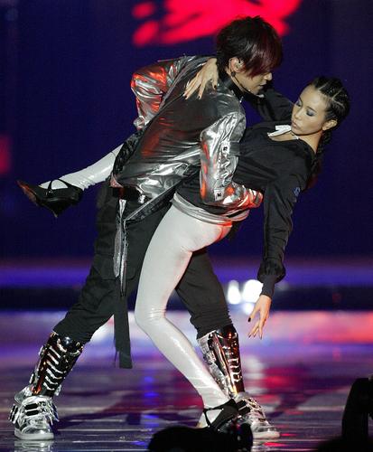与莫文蔚的拉丁舞充满性暗示,只见性感的莫文蔚背对观众出场,早获得她“真摸”指令的小猪对她从正面、背面、从上、从下摸透透,她则是长腿缠绕着他,两人的互动令全场尖叫。与Jolin则是意外的桥段,“舞”功高强的两人不再尬舞,选择弹双钢琴《天空》。