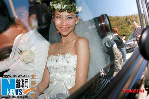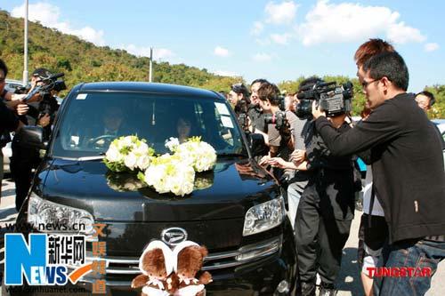 蔡少芬和张晋乘坐花车,到香港浸信会神学院大礼堂举行婚礼,亲朋分别坐车到达。