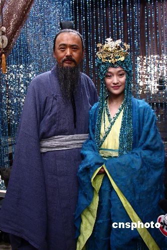 5月20日,胡玫的年度大戏《孔子》首次开放记者探班,十位记者齐聚涿州,揭开了这部“神秘大戏”面纱一角。当天下午,剧组拍摄的是一场重头戏“子见南子”,饰演孔子的周润发、饰演南子的周迅、饰演颜回的任泉,饰演鲁定公的姚橹,饰演孟孙何的王斑和饰演季孙斯的陈建斌等主要演员一一亮相。图为周润发、周迅戏服造型亮相。 中新社发 李学仕 摄