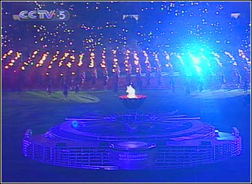 男演员手持火炬/女演员手持一端有纸穗装饰的杆子