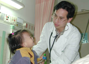 (解说词)看病是要治病,社区卫生服务机构的医疗水平是老百姓最关心的,首要关心的当然是医生的素质。据了解,社区卫生服务中心由二级医院及功能完善的一级医院转制而成,也就是说医护人员都是专业的医疗卫生人员,有些医生则是全科医生,居民们从头到脚的大小毛病社区医生都能看个八九不离十。