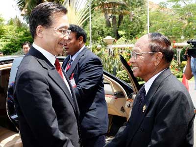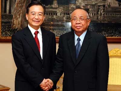 温家宝说,由两国老一辈领导人共同缔造和精心培育的中柬友谊深入人心,不断发扬光大。历史已经并将继续证明,中柬是相互信任的好朋友,真诚合作的好伙伴。中方愿继续与柬方一道,不断深化友谊与合作,实现共同发展。