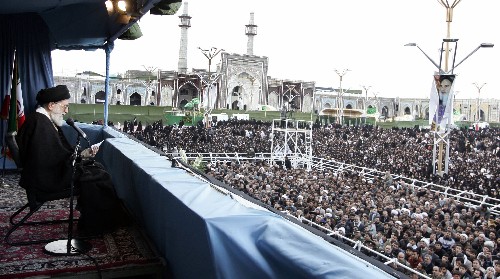 | 21日,伊朗最高领袖哈梅内伊发表讲话警告美国不要试图对伊朗施压。 新华/路透 |