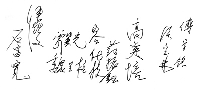 | 一位听众给本报寄来了自己保存的上世纪90年代一批相声艺术家的签名。包括石富宽、侯跃(耀)文、贾冀光、魏兰柱、容化技、范振钰、高英培、侯宝林、傅学铭(从左至右)。 |