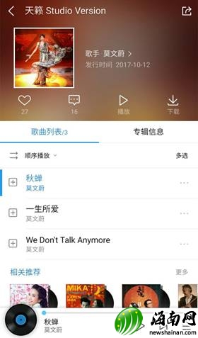 精挑细选,让经典流传。莫式演绎,犹如天籁。2016年,Karen莫文蔚参与综艺节目《天籁之战》。短短十二集,她每次与素人PK时,都施展浑身解数,将歌曲演绎得完美无瑕。Karen从中精选三首最爱曲目,重新编曲及录制成为studio version。就在10月12日,莫文蔚《天籁 Studio Version》EP,在酷狗独家首发。