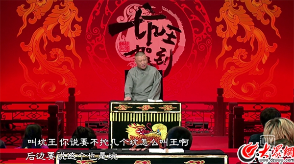 说书是吃饭的能耐,郭德纲在《坑王驾到》第二季节目里也经常说起这一观点,并表示这是长时间的积累,还以玩笑的方式讲述了相声圈某大师教人背书的故事,说之前有一粉丝遇见某相声大师,说要跟大师学相声,问到,是不是要先把您的书都背下来,大师咬着牙说“对,回去背去吧。”郭德纲调侃太坑人,说书不是靠背,是把我读过的书用我的想法讲给大家听,靠背就是欺负观众不认字。