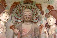 麦积山石窟位于甘肃省天水市东南45公里处的天水市北道区麦积乡。石窟建造在距地面140多米的悬崖峭壁之上,远远望去因“状如农家积麦之朵”,故名“麦积山”。麦积山山体为砂砾岩崖,现存的194个洞窟虽然饱经岁月侵蚀,但在峭壁上凿成的千窟万龛,密如蜂房。在窟龛之间,栈道凌空,层层相连,构成一派雄伟壮观的奇绝景象。