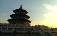 走进天坛的西门,一眼望去,苍松翠柏,碧瓦蓝天,一条幽深的大道直奔丹陛桥,这庄严、肃穆、幽静的景象,立时把人们带入一种清朗、宁静而祥和的美妙境界。