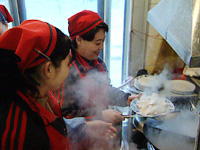 石家庄市天荟便利店经理 刘荣秀:通过石家庄市总工会,咱们要求招下岗职工,条件就是一个,女同志年龄偏大的,文化水平比较偏低的,也就是比较难再就业的这些职工,到这里来做服务行业。从服务工作上对她们进行短期的培训,从优质服务上、服务技巧上,由老职工带带她们,目前来说她们干得都不错。