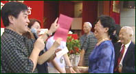 采访老年合唱大赛办公室 王业华:这次比赛出场次序是通过抽签的办法决定的,大赛组委会根据不同的地域、民族和行业特点,把90个团队分成6个小组,通过抽签的办法,决定你这个组是哪一天,哪一场参赛,每个小组的15个团队,再采取一次抽签的办法,决定你的出场次序。