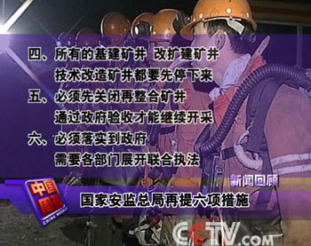 本周四,国家安监总局再次提出六项措施,要求立即关闭已列入名单的煤矿,以防止这些煤矿利用关闭前的最后时间疯狂采煤酿成矿难。另外,对于所有的基建矿井、改扩建矿井等也要先全部停工,以防打着技术改造的幌子明停暗采。