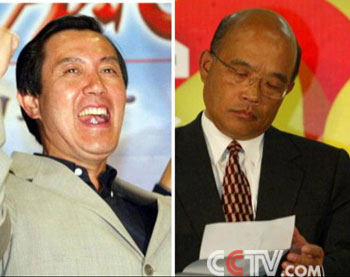 解说:和苏贞昌一样,在此次选举之前,国民党主席马英九也立下“拿不下10席就辞去党主席”的军令状。最后的结果是,中国国民党在此次台湾岛内县市长、县市议员、乡镇市长的三合一选举中大获全胜,尤其是最重要的县市长选举中,国民党获得了23席中的14席。加上亲民党、新党获得的两个席位,使得台湾地区蓝绿两大阵营的政治版图发生了根本性的变化。