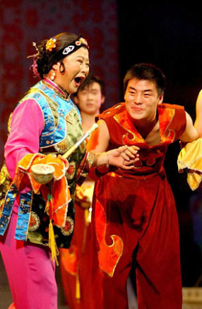是个两句体的腔格,上下句都有较长的行腔,大救驾在二人转节目里只演唱一、二番,也可男女演员合唱一番。
