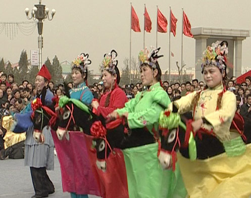 在南街村东方红广场,歌声、笑声融汇成了一片欢乐的海洋,中央电视台7套《乡村大世界》栏目再次走进南街村,演员们与村民们共同分享着春天的喜悦。
